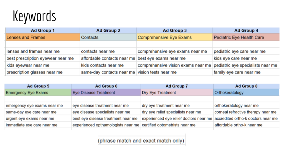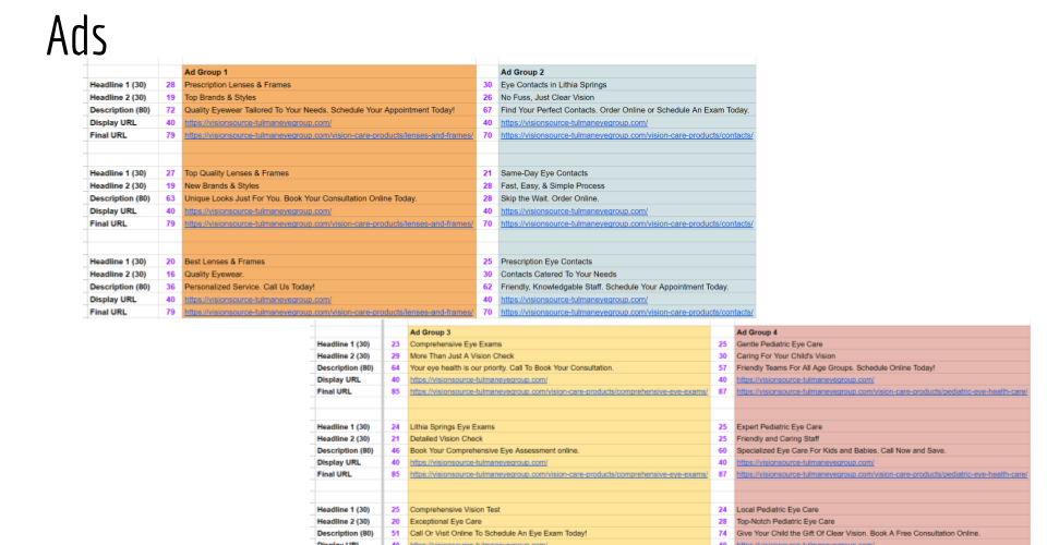 I executed a Google Search ad campaign for Tulman Eye Group, applying keyword research, geo-targeting, and compelling ad copy creation to increase local appointment bookings for their eye care services.